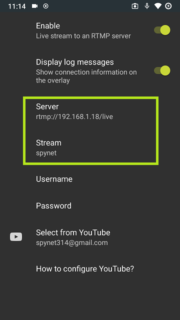 - in the Stream field enter a streaming key of your choice, let’s use spynet